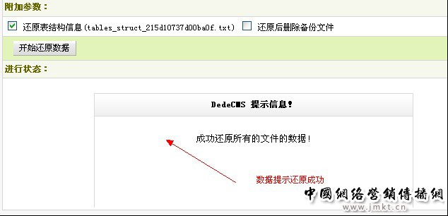 进入后台,点击“系统”-“数据库备份/还原”,执行“数据还原”即可。