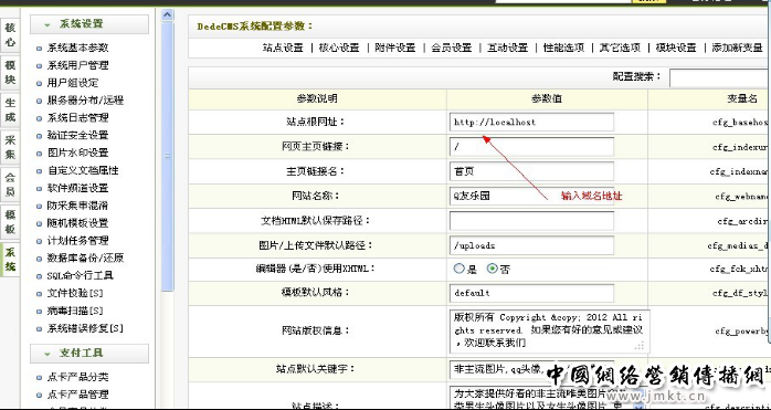 4,进入后台,点击“系统”-“系统基本参数设置”,修改网站根目录地址,填你的域名名,保存(这一步很重要)