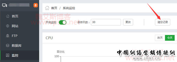 1、清除系统监控记录。打开宝塔面板后台,找到监控,点击清空记录。