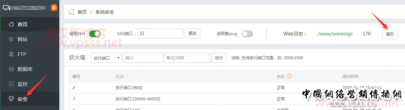 2、清理 WEB 日志。找到系统安全,右侧点击清空 web 日志。