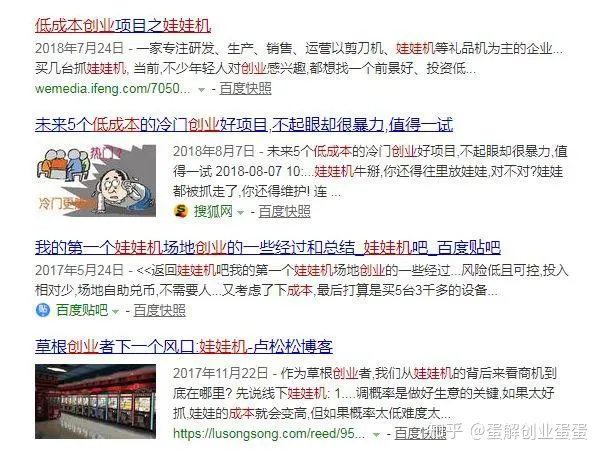 但对于当时的电玩城来说,娃娃机并不是第一选择。于是,在番禺娃娃机产量增加的同时,生产商就开始了铺天盖地的宣传。直到今天,如果在网上搜索,依然可以看到娃娃机创业,低成本、好赚钱等消息。