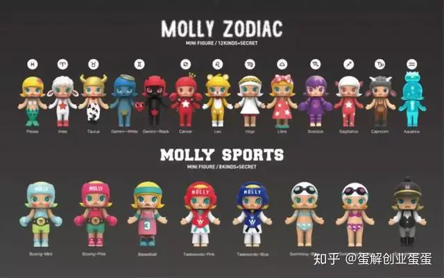 Molly最早在2005年被设计出来,但一直商业化做得不好,每季产量很少。于是泡泡玛特团队去香港找到Kenny合作,由Kenny主理设计,泡泡玛特负责从开模、生产、宣传到销售的其余环节,并采用盲盒的方式销售。