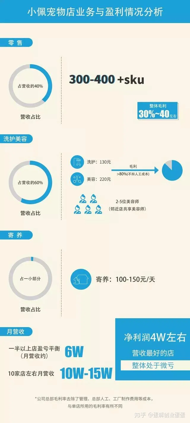 如果你觉得这个收益太小,那么蛋解创业编辑部告诉你,对于普通社区宠物店来说,这家店5万的收入已经是不错的了,因为一家普通社区店月营业额6-7万就会饱和。