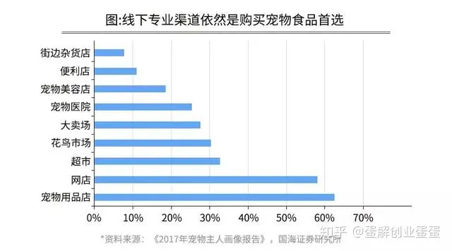 根据英敏特调研数据显示,宠物店仍是目前国内消费者购买宠物食品的首选渠道。如果将宠物店、花鸟市场、宠物医院、宠物美容院统统归类为线下专业渠道,几乎一半的消费者购买行为都发生在这类渠道。2017年宠物医院增速67%、宠物店增速28%、商超增速8%。